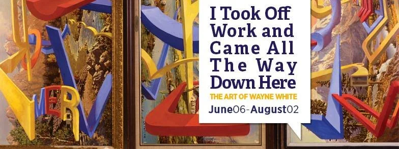 More recently, Wayne has had great success as a fine artist and has created paintings and public works that have been shown all over the world. His most successful works have been the world paintings featuring oversized, three-dimensional text painstakingly integrated into vintage landscape reproductions. The message of the paintings is often thought-provoking and almost always humorous, with Wayne pointing a finger at vanity, ego, and his memories of the South. Wayne has also received great praise for several public works he has created recently, including a successful show at Rice University where he built the world’s largest George Jones puppet head for a piece called 'Big Lectric Fan To Keep Me Cool While I Sleep.'
